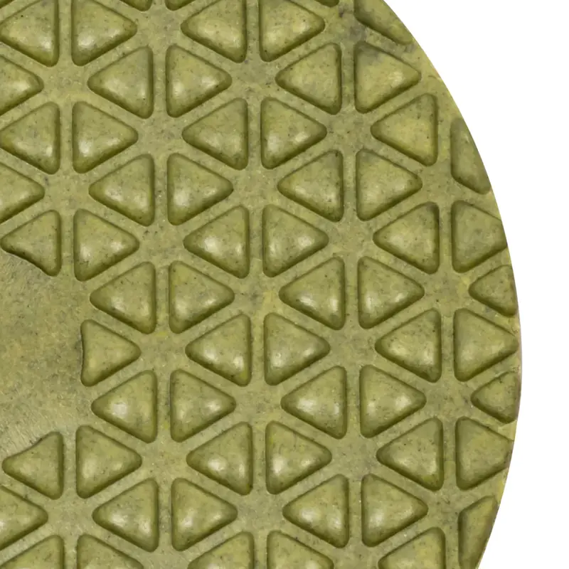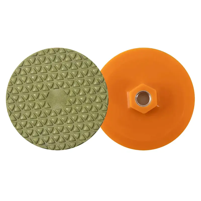 Данные черепашки имеют более высокую концентрацию алмазов по сравнению со стандартными. Благодаря рисунку "мелкий ромб" работают более быстро и агрессивно чем классический рисунок "соты или крупный ромб". Также рисунок "ромб" обеспечивает лучший отвод пыли и шлама чем стандартный рисунок в виде "соты". Важной особенностью является наличие пластиковой основы которая позволяет устанавливать шлифовальный круг на электроинструмент без дополнительных аксессуаров увеличивая скорость фиксации и центровки. Эти сверхпрочные алмазные гибкие диски имеют высокий ресурс использования и гарантируют высокое качество финишной обработки. Специальный связующий компонент на основе термостойкой износоустойчивой керамики не оставляет следов на поверхности светлых и тёмных камней.