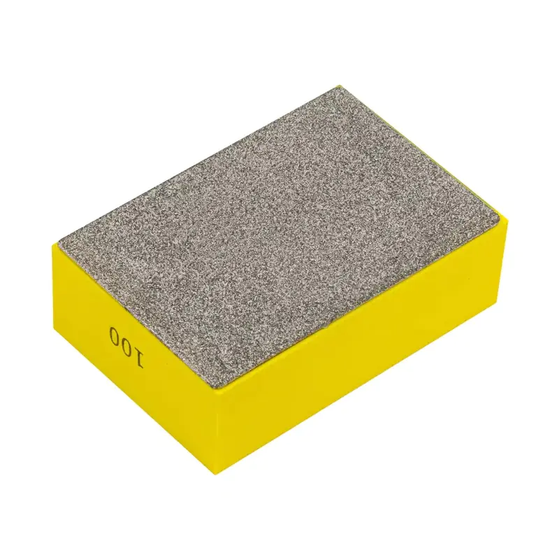 Алмазный шлифовальный брусок (притир) DLT #100 предназначен для шлифовки и полировки краёв и срезов на керамической плитке, керамограните, искусственном и натуральном камне, стекле. Подходит для сухого и мокрого шлифования. Обработка материала с водяным охлаждением позволяет получить лучшее качество поверхности и значительно увеличит ресурс алмазной губки. Брусок полугибкий (по ощущениям напоминают мягкую резину, чем поролон), что улучшает эргономичность бруска и снижает утомляемость руки во время его использования. Размер: 55х30х90 мм.
