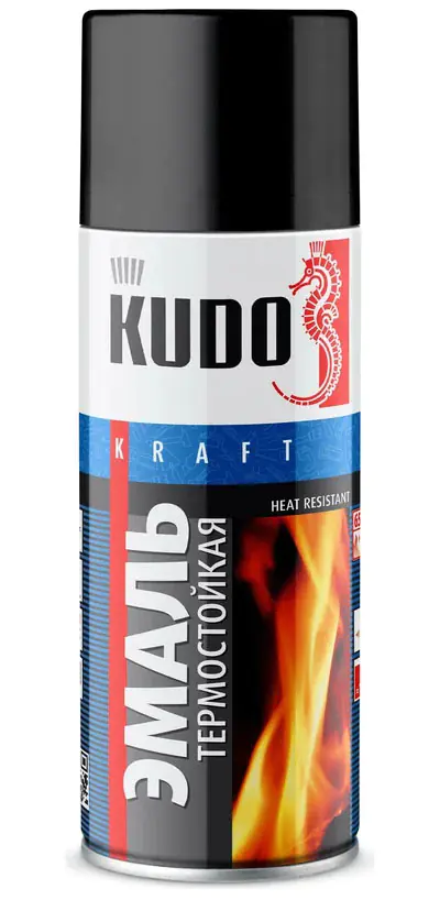 Термостойкая эмаль KUDO KU-5002 черная предназначена для окраски металлических изделий, которые подвергаются нагреванию до температуры 800°C. Продукт легко наносится на труднодоступные места, отличается хорошей укрывистостью и атмосферостойкостью.