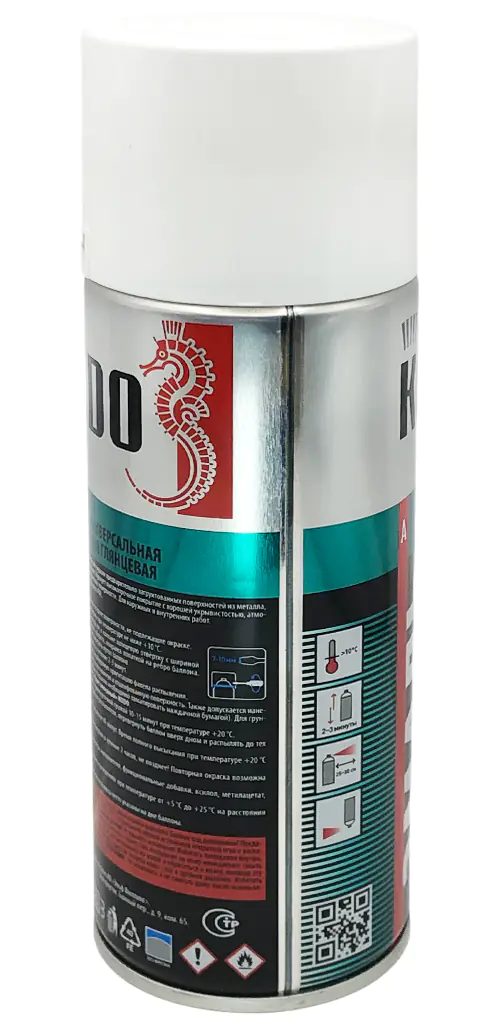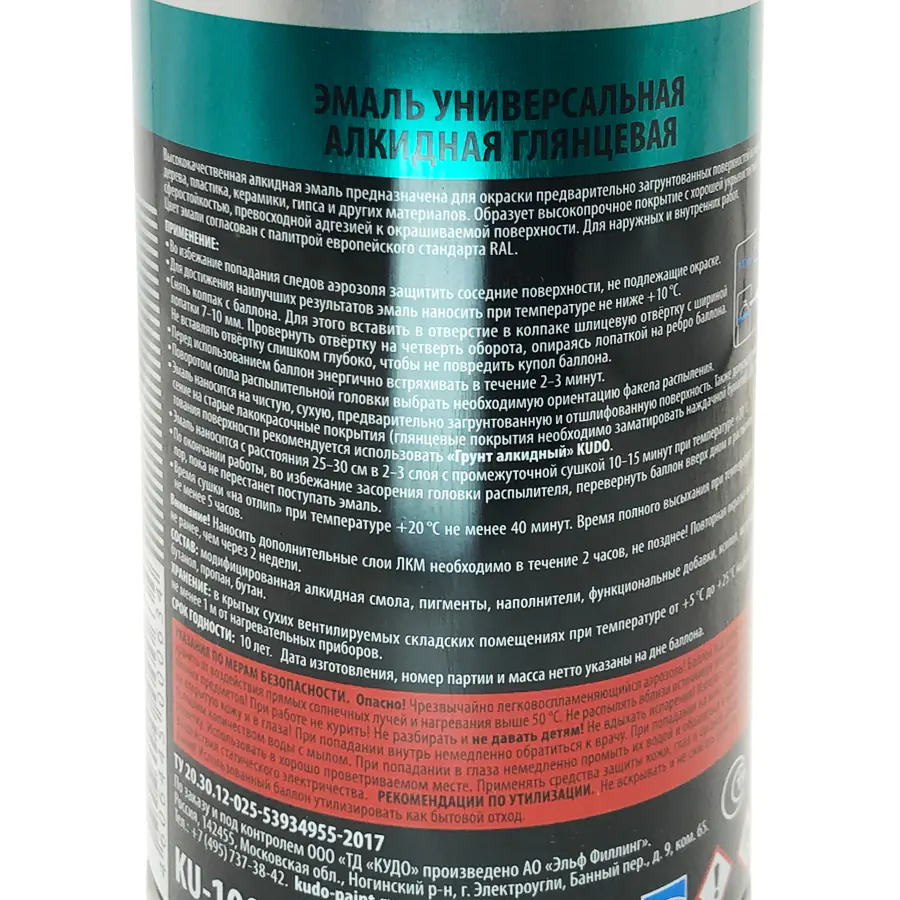 Универсальная эмаль KUDO белая глянцевая KU-1001 предназначена для окраски предварительно загрунтованных металлических и деревянных поверхностей. Аэрозольная краска легко наносится на труднодоступные места. Образует долговечное покрытие с хорошей укрывистостью, атмосферостойкостью, превосходной адгезией к окрашиваемой поверхности. Имеет высокую твердость, светостойкость и стойкость к растворителям. Применяется для наружных и внутренних работ.