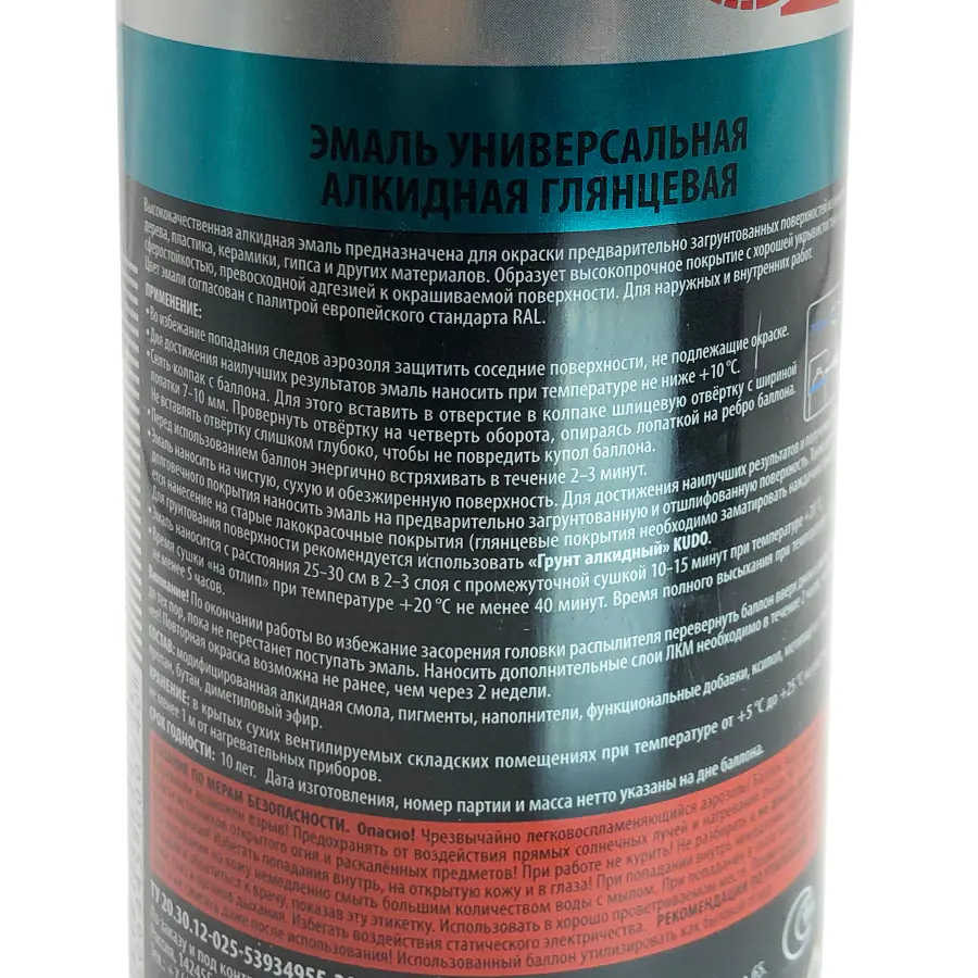 Универсальная эмаль KUDO синяя KU-1011 предназначена для окраски предварительно загрунтованных металлических и деревянных поверхностей. Аэрозольная краска легко наносится на труднодоступные места. Образует долговечное покрытие с хорошей укрывистостью, атмосферостойкостью, превосходной адгезией к окрашиваемой поверхности. Имеет высокую твердость, светостойкость и стойкость к растворителям. Применяется для наружных и внутренних работ.