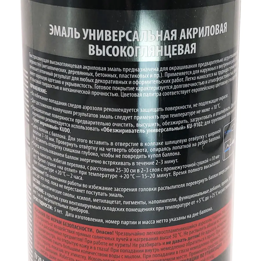 Акриловая универсальная высокоглянцевая эмаль KUDO KU-A7012 предназначена для окрашивания предварительно загрунтованных поверхностей. Обеспечивает отличный результат для любых декоративных и оформительских работ. Готовое покрытие характеризуется долговечностью и атмосферостойкостью, обладает высокой твердостью и механической прочностью. Имеет яркий, насыщенный цвет, высокую эластичность и хорошую адгезию к пластикам.