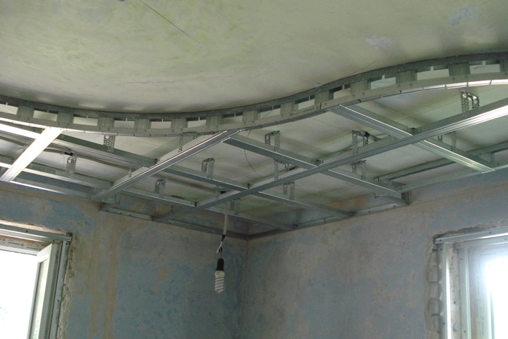 При необходимости создания округлых элементов каркаса на профиле с шагом в 25 мм делают насечки. По предварительно сделанной разметке профильные заготовки прикручивают к стене.