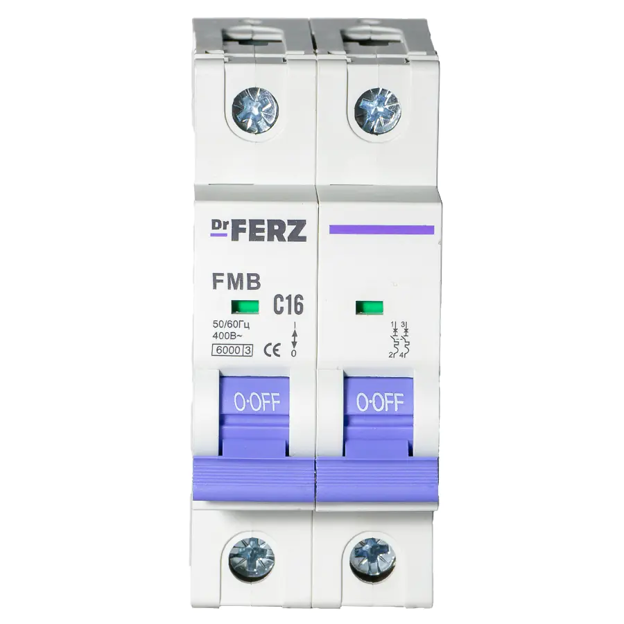 Автоматические выключатели Dr.FERZ 6kA 2P 16A тип С серии FMB – надёжное решение для защиты электрических цепей от перегрузок и коротких замыканий. Устройства рассчитаны на работу в сетях переменного тока с напряжением 230/400 В и частотой 50/60 Гц. Подходят для установки в распределительных щитах жилых, коммерческих и промышленных объектов, обеспечивают безопасное управление цепями и соответствуют современным стандартам электробезопасности.