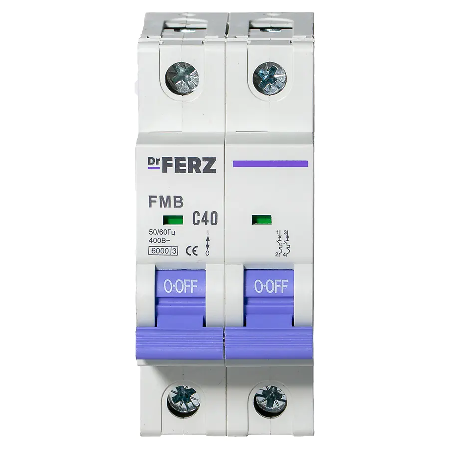 Автоматические выключатели Dr.FERZ 6kA 2P 40A тип С серии FMB – надёжное решение для защиты электрических цепей от перегрузок и коротких замыканий. Устройства рассчитаны на работу в сетях переменного тока с напряжением 230/400 В и частотой 50/60 Гц. Подходят для установки в распределительных щитах жилых, коммерческих и промышленных объектов, обеспечивают безопасное управление цепями и соответствуют современным стандартам электробезопасности.