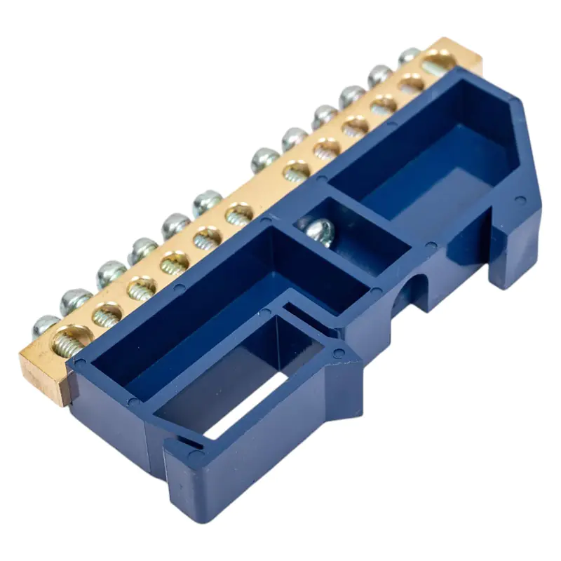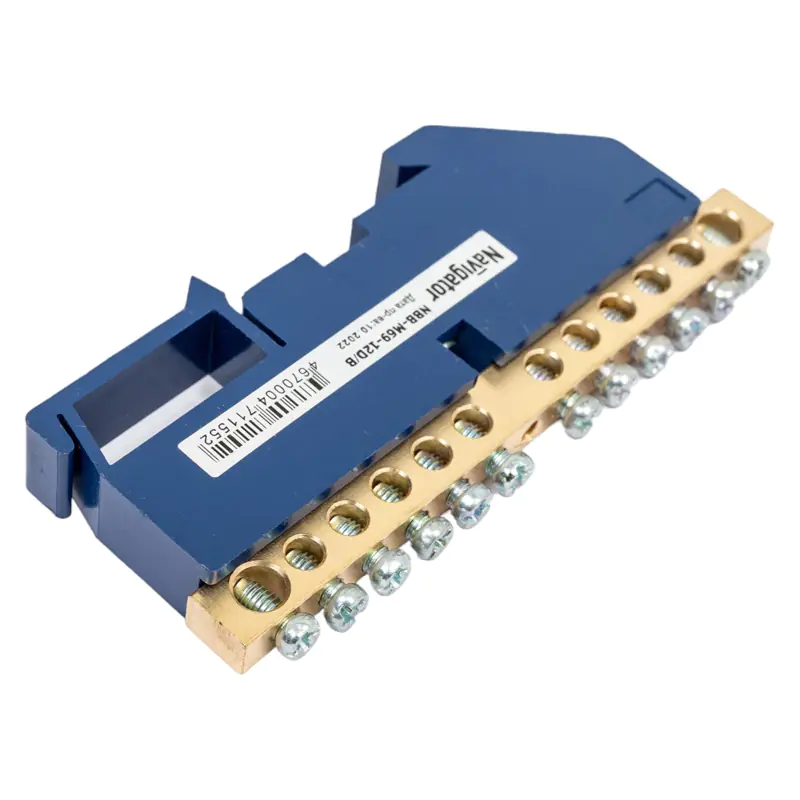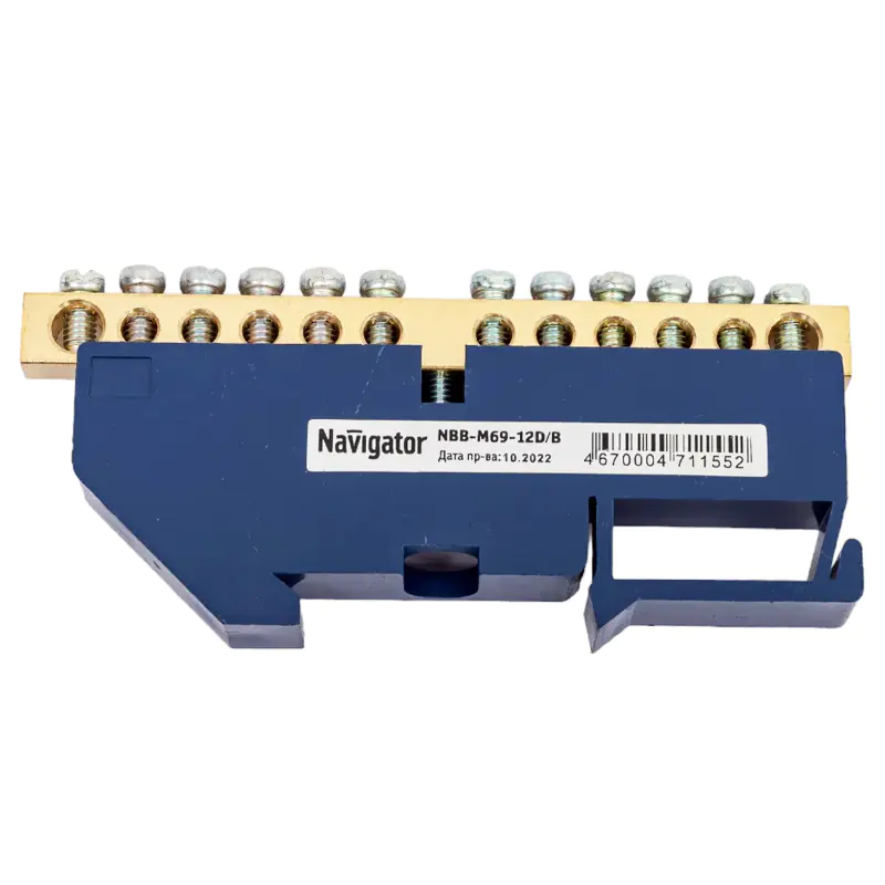 Нулевые шины на DIN-изоляторе Navigator серии NBB предназначены для электрического и механического соединения нулевых рабочих (N) и нулевых защитных (PE) проводников, и представляют из себя целиковую латунную планку с отверстиями и винтовыми прижимами. Как правило, нулевые шины крепятся в распаячных коробках или распределительных щитках.