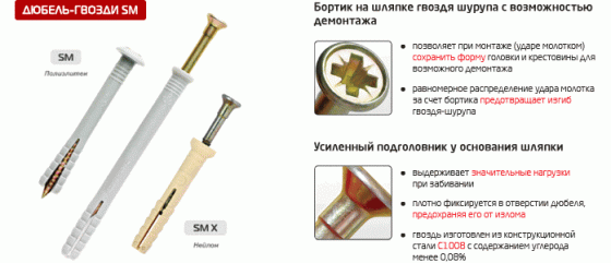 Дюбель-гвоздь потайной Klimas SMN 6*40 нейлоновый. Используется для потайного монтажа, для крепления деревянных планок, брусков, листов фанеры к бетону, полнотелому кирпичу, натуральному камню. В пачке 200 шт.