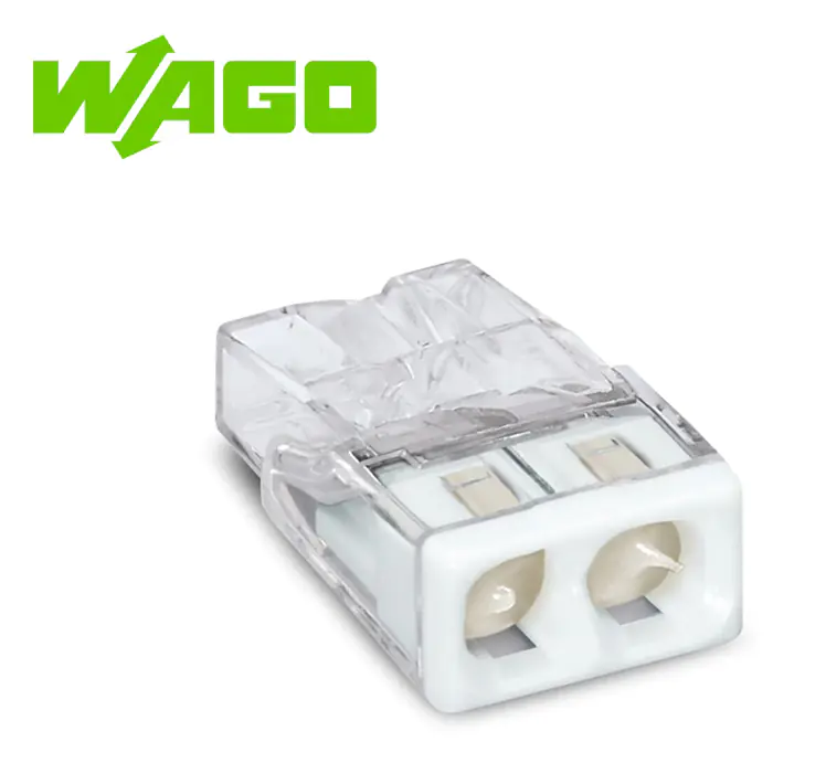 Прозрачный корпус позволяет визуально контролировать правильность положения проводника и длину снятия изоляции. Проводящая часть соединителя изготовлена из меди.