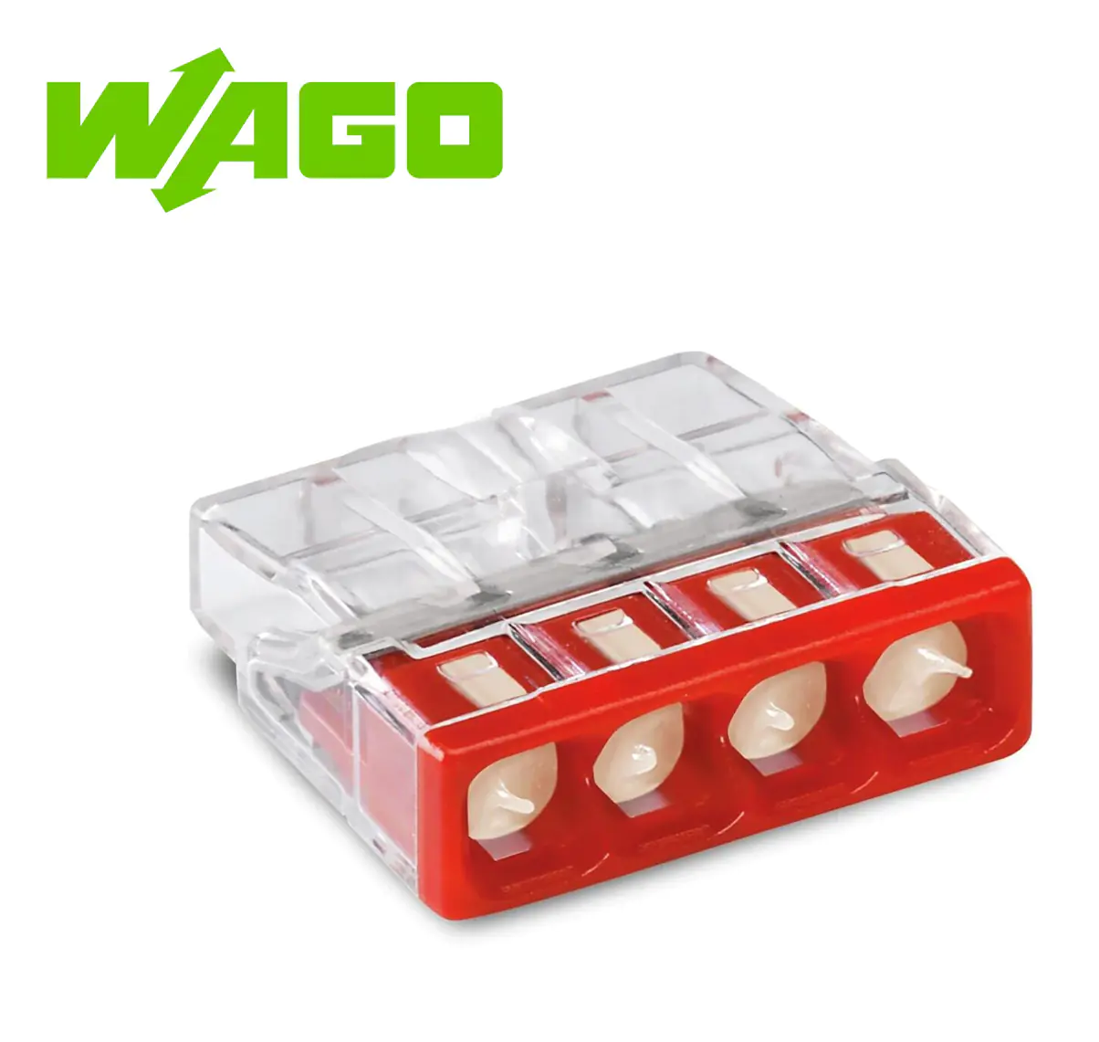 Прозрачный корпус позволяет визуально контролировать правильность положения проводника и длину снятия изоляции. Проводящая часть соединителя изготовлена из меди.