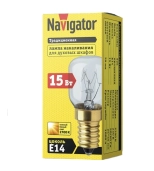 Лампа накаливания Navigator 15 Вт предназначена для использования в духовых печах. Выдерживает температуру окружающего воздуха до 300 °C. Цветность: естественный белый. Средний срок службы: 1000 ч