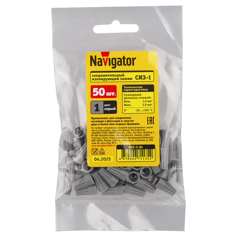 Соединитель проводов СИЗ-1 NSC-1-Gr (50 шт) Navigator 71135 входит в группу изолирующих зажимов, наконечников и клемм и предназначен для быстрого и надёжного соединения проводов различного сечения. Серия NSC-1-Gr охватывает диапазон сечения проводов от 1.0 до 3.0 мм, упаковка рассчитана на 50 штук/