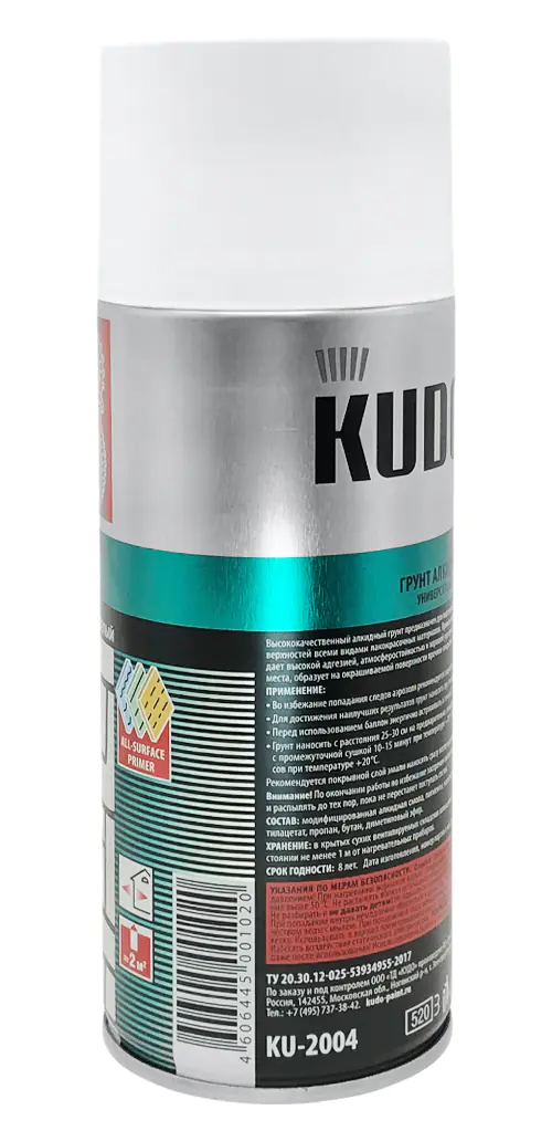 Универсальный грунт KUDO белый предназначен для подготовки к окрашиванию металлических и деревянных поверхностей всеми видами лакокрасочных материалов. Состав обладает высоким уровнем адгезии, атмосферостойкостью и хорошей укрывистостью. Благодаря аэрозольному распылению продукт легко наносится в труднодоступных местах, образуя прочное покрытие.