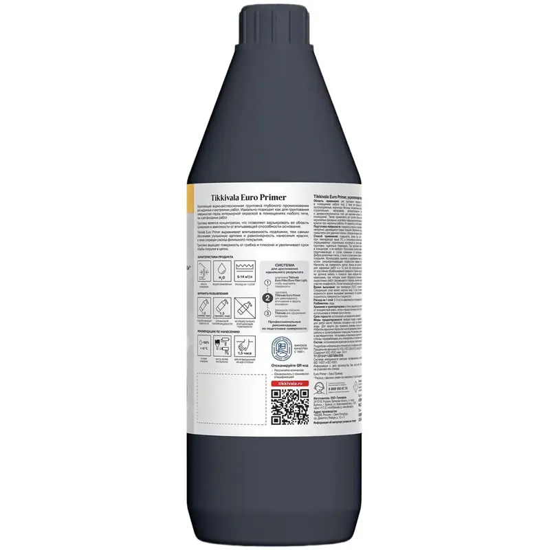 TIKKIVALA Euro Primer предназначен для грунтования поверхностей перед интерьерной окраской в помещениях любого типа, а также для фасадных работ. Подходит для грунтования оштукатуренных, кирпичных, бетонных, гипсокартонных и газобетонных поверхностей, гипсовых строительных материалов, волокнисто-цементных панелей, древесностружечных и древесноволокнистых плит, для укрепления мелящих и побеленных поверхностей внутри помещений. А также для пропитки бетонных оснований, цементных штукатурок, акрилатных фасадных шпатлёвок перед нанесением фасадных водно-дисперсионных акриловых красок при наружных работах. Не рекомендуется для применения по слабо держащимся покрытиям и штукатуркам.