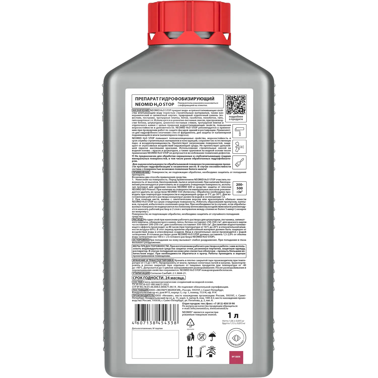 NEOMID H2O STOP гидрофобизатор – концентрат. Для изготовления рабочего раствора концентрат разбавить водой. Концентрация состава зависит от условий эксплуатации. Готовый раствор использовать для создания водоотталкивающего покрытия в течение 24 часов.