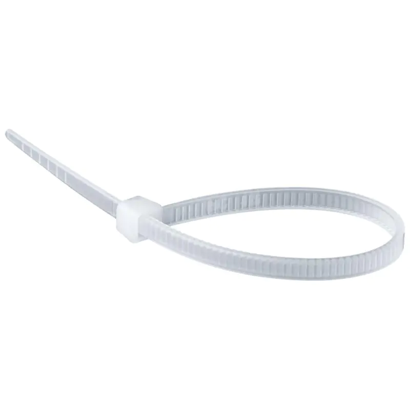 NCT-025-200-100/WH предназначены для увязки в пучок и монтажа кабелей и проводников. Хомуты изготовлены из негорючего нейлона и обладают стойкостью к щелочам, органическим растворителям и горюче-смазочным материалам. Температура эксплуатации кабельных стяжек от −40 до +80 °C. Ширина хомута составляет 2,5 мм, а его длина — 200 мм. В упаковке 100 штук.