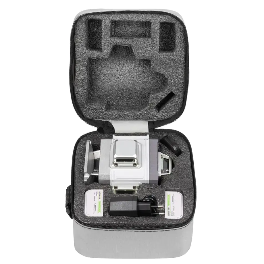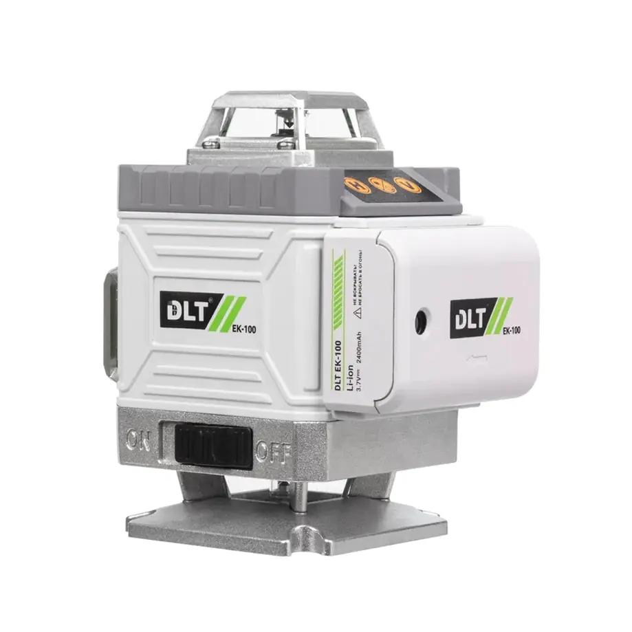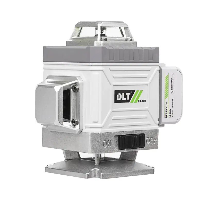 - 4D лазерный нивелир DLT EK-100 строит четыре плоскости по 360° (16 линий), может строить наклонные проекции, имеет рабочий диапазон до 30 метров (в зависимости от освещенности) и погрешности в диапазоне ±2мм/10м (точнее не бывает "в природе" среди призменных уровней, только линейные бывают точнее).