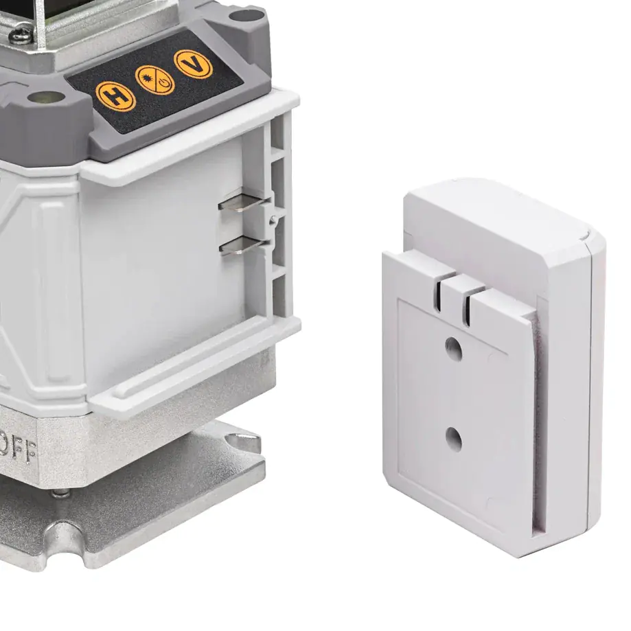 - Уровень имеет в комплекте пульт управления, и с его помощью можно на расстоянии управлять включением плоскостей (линий), а также регулировать их яркость, и тем самым делать линию тоньше или толще.