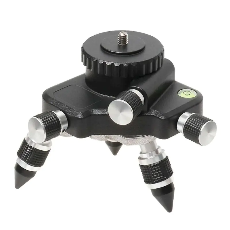 Платформа имеет пузырьковый уровень и регулируемые по высоте ножки, предназначенные компенсировать уклон поверхности, увеличивая диапазон самовыравнивания нивелиров до 10°. Подставка имеет винт 1/4" для установки на неё нивелиров, а сама платформа может устанавливаться на штативы и штанги с резьбой 5/8".