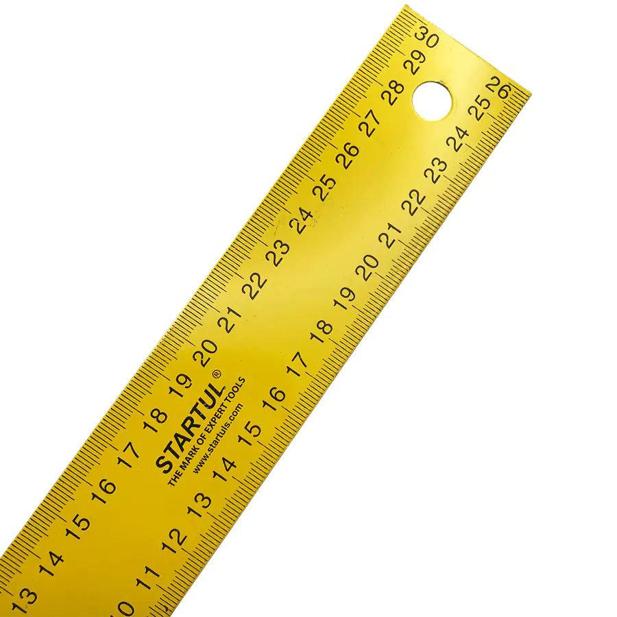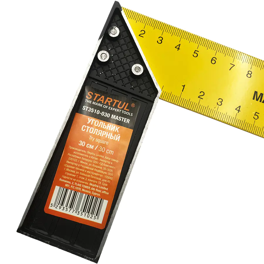 Угольник столярный металлический с окрашенной поверхностью и двухсторонней разметкой полотна. Предназначен для разметки и проверки прямых углов, а также для проверки угла 45º градусов при обработке и сборке изделий. Длина 300 мм.