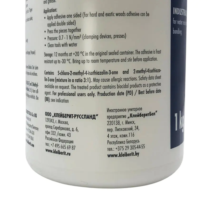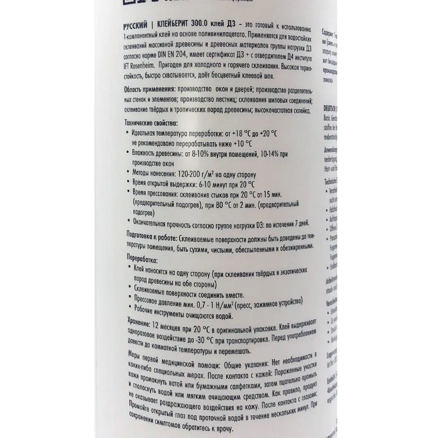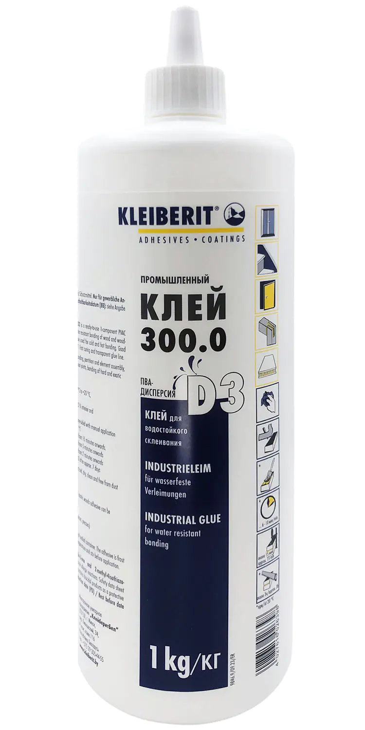Клей ПВА столярный KLEIBERIT Leim 300.0 D3 1 кг отлично подходит для производства окон, дверей, лестниц, а также других областей применения.