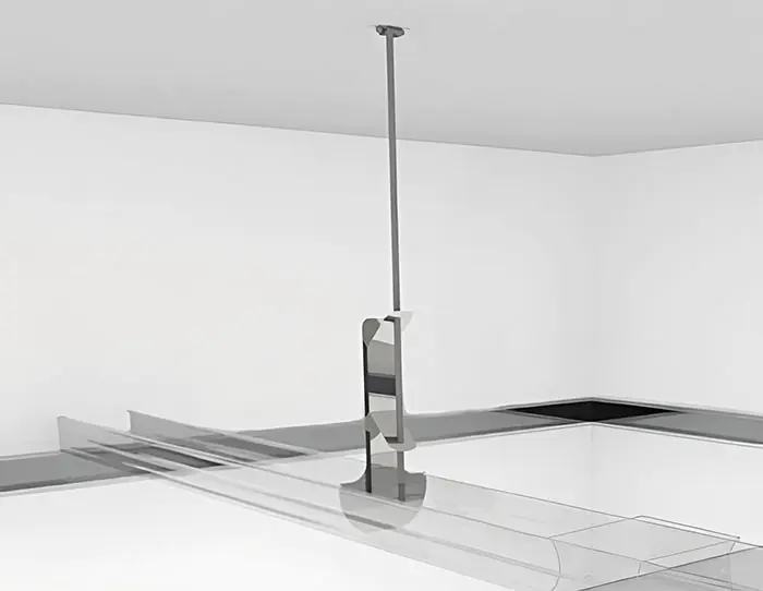 Подвес регулируемый с зажимом служит для крепления профилей CD в потолках из гипсокартона. Используется вместе со спицами, позволяющими варьировать понижение потолка. Подвес с зажимом выполнен в виде пластины с перфорацией и пружинной скобой. При использовании подвеса отступ потолка по высоте от основной плоскости доступен как 15 см, для электропроводки, так и образующий внутреннее пространство до 1 метра — например, для прохождения коробов вентиляции. Не используйте в низких помещениях. Следите за ограничением нагрузки до 25 кг/м.кв.