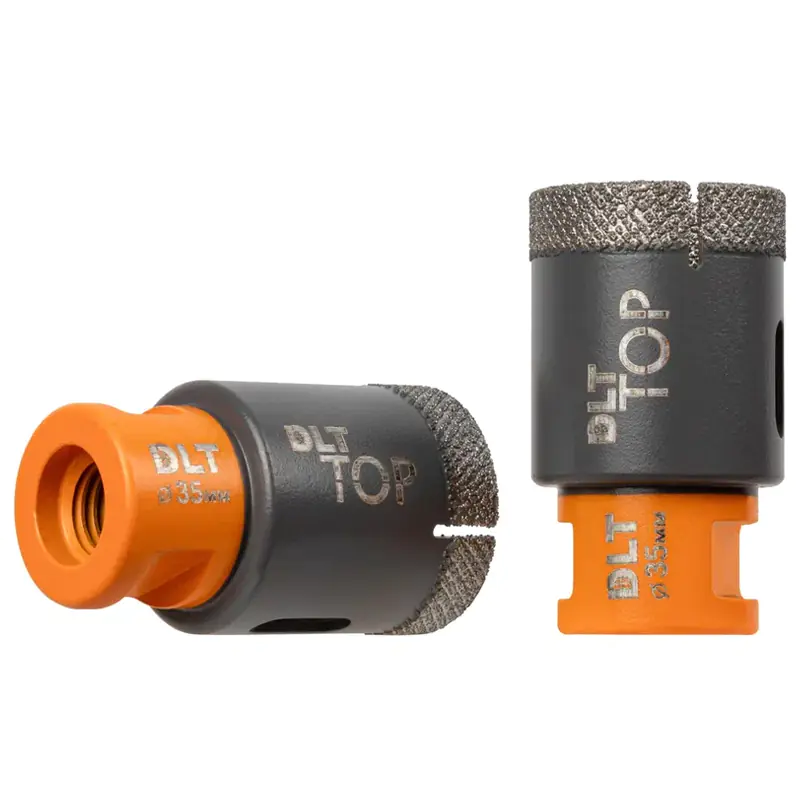 Алмазная коронка DLT TOP 35 мм выполнена по технологии вакуумно-жидкостного спекания, при котором алмазы расположены в строго распределенном порядке за счет чего коронки позволяют производить быстрое и чистое сверление с минимальными сколами. При этом сохраняется высокая скорость сверления и ресурс, даже без использования водяного охлаждения.