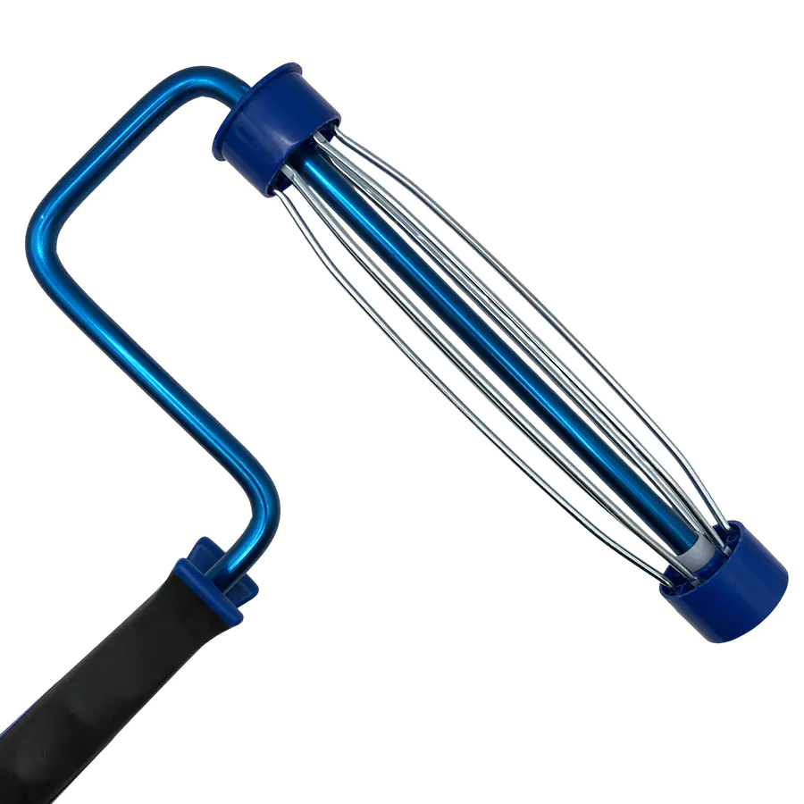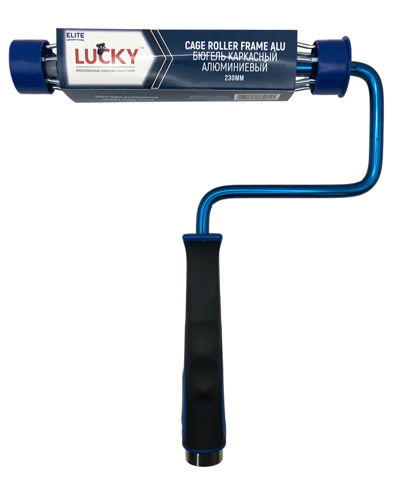 Бюгель для валиков 230 мм на каркасе Lucky 559909. Пластиковая эргономичная двухкомпонентная ручка с рельефным нескользящим прорезининым профилем, алюминиевый стержень и каркас под ядро 38 мм с плавным инерционным ходом. Легкий вес разгружает кисть при работе.
