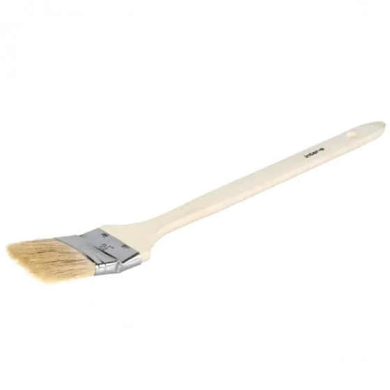 Радиаторная кисть с неокрашенной деревянной ручкой и металлическим рифленым бандажом. Натуральная щетина. Ширина щетины 25 мм.