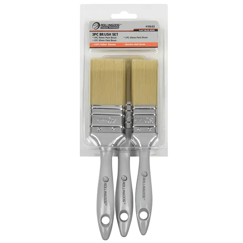 Набор малярных кистей серии Rollingdog Standard 10633 состоит из 3 кистей с синтетической нитью с прямым срезом. Малярные кисти со щетиной, срезанной прямо, лучше всего подходят для окрашивания больших плоских поверхностей. Легко отмываются от краски. Наконечник из нержавеющей стали прочно удерживает нити, легко моется и устойчив к коррозии. Эргономичная рукоять кисти выполнена из пластика.