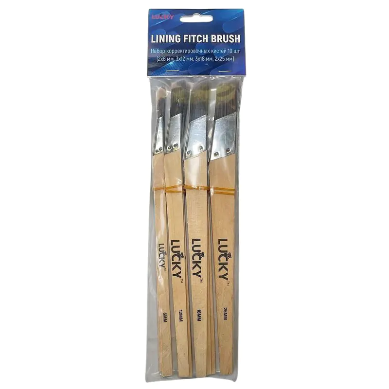 Набор корректировочных кистей Lucky FlowBliss – это профессиональное решение для аккуратных отделочных работ и деликатной подкраски. В комплект входят 10 кистей различных размеров, что позволяет выполнять широкий спектр задач – от точечной корректировки до аккуратного прокрашивания кромок и мелких деталей.