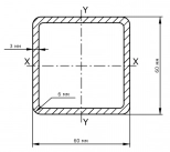 Стальная профильная труба квадратного сечения 60х60х3 мм. Используется при монтаже внутренних и наружных каркасов зданий и сооружений, строительных лесов, опор, ограждений, заборов, дверей, теплиц, рекламных щитов и т.д. Труба производится из углеродистой стали марки Ст3ПС. Трубы могут иметь отклонения от заявленной толщины: по ТУ — до 25%, по ГОСТу — до 12,5%.