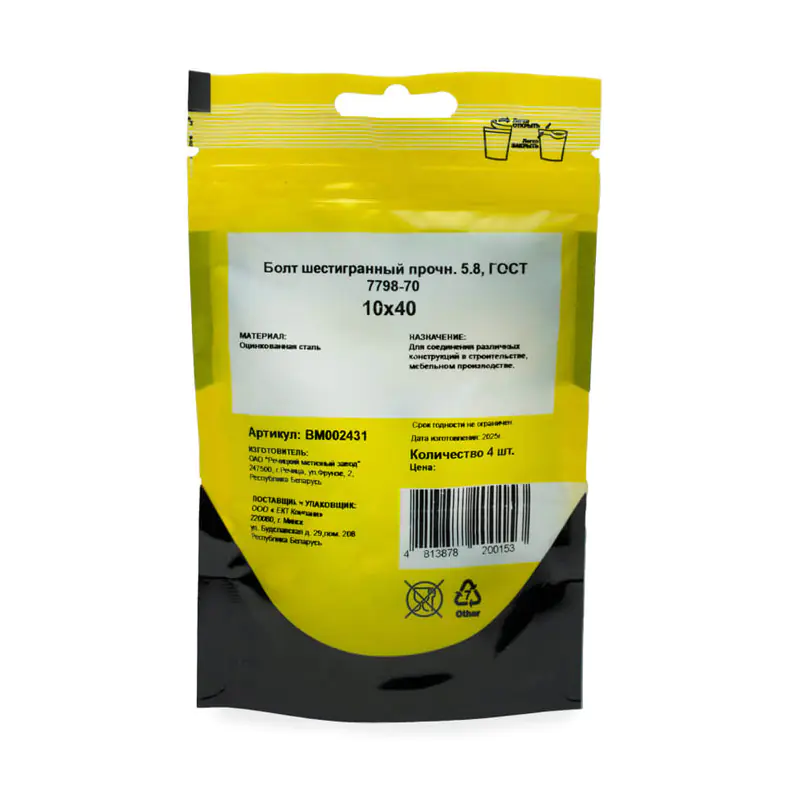 Болт соответствует требованиям СТБ ISO 4017-2009 и DIN EN ISO 4017, что подтверждает его соответствие международным стандартам качества и безопасности.