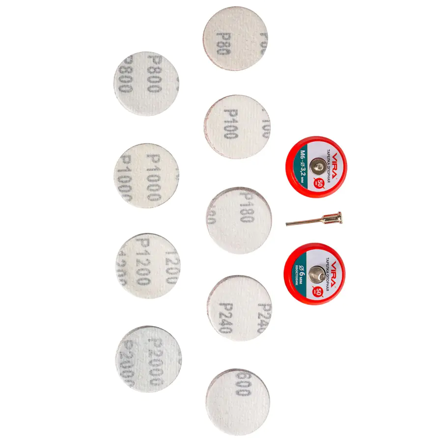 - Зернистость: Р80 (10 шт), P100 (10 шт), P180 (10 шт), P240 (10 шт), P600 (10 шт), P800 (10 шт), P1000 (10 шт), P1200 (10 шт), P2000 (10 шт).
