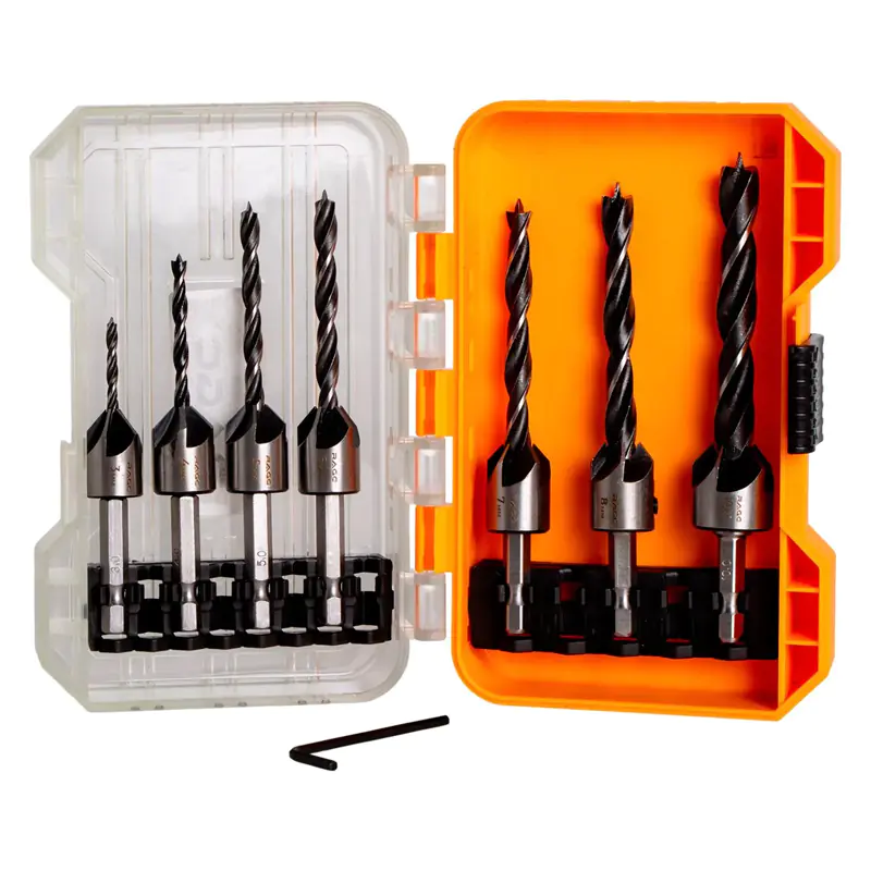 Комбинация сверла и зенкера позволяет за одну операцию просверлить отверстие и создать для него аккуратную зенковку под потай. Это экономит время и обеспечивает идеальную соосность. Набор из 7 диаметров покрывает большинство задач, а шестигранный хвостовик гарантирует надежную работу в быстрозажимном патроне.
