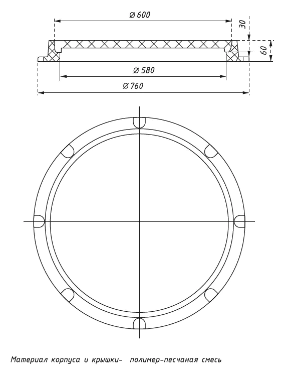 - Толщина крышки: 30 мм.