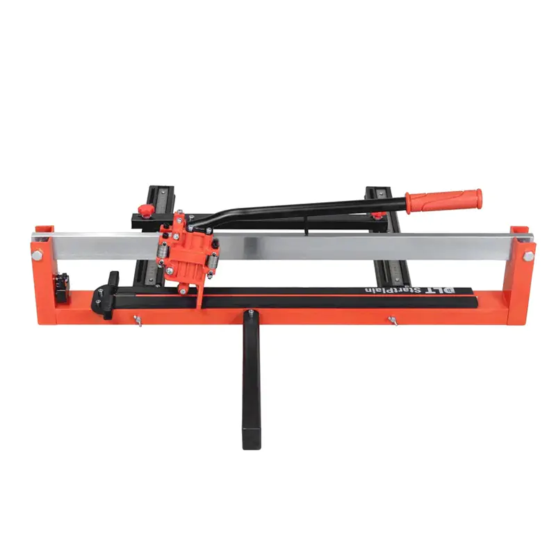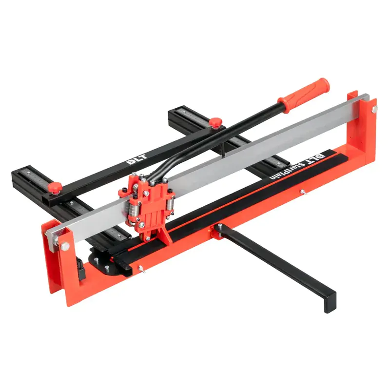 Плиткорез имеет большой прочный рычаг, который позволяет оказывать на заготовку максимальное давление при минимальном усилии. Устройство направляющей каретки плиткореза охватывает монорельс с четырех сторон и передвигается посредством шарикоподшипникового механизма, обеспечивая плавность хода. Рабочий стол изготовлен из стали, что делает станину станка очень прочной. Рабочий стол покрыт мембраной, которая создает амортизирующий эффект при разделении плитки, также это позволяет уменьшить жесткость резки, что особенно важно при работе с хрупкими материалами и керамогранитом с очень высоким внутренним напряжением (перекалённым керамогранитом).