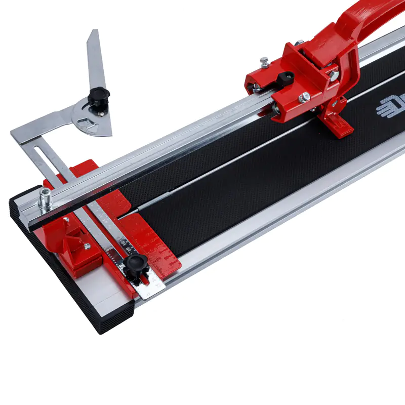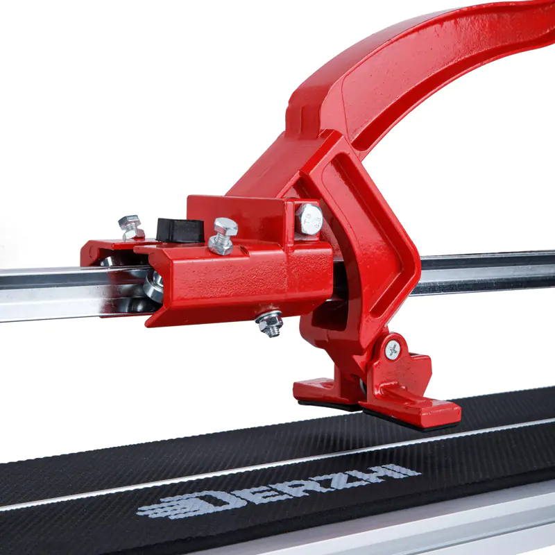 Плиткорез ручной рельсовый 900 мм, 6 подшипников, DERZHI (187691) прекрасно походит для выполнения кафельных работ. Инструмент ровно и точно разрезает напольную и настенную керамическую плитку длиной до 90 см и толщиной до 16 мм. Металлический угольник служит для регулировки размера и надежной фиксации заготовки.