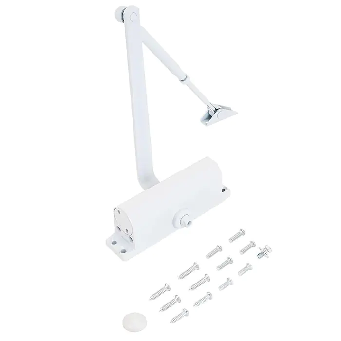 Доводчик дверной механогидравлический, накладной, верхнего расположения, для левых и правых дверей, двухскоростной. Устанавливается на распашные двери с упором, рекомендуемая ширина дверного полотна до 1250 мм, вес дверного полотна до 120 кг. Гарантия 2 года с даты продажи.
