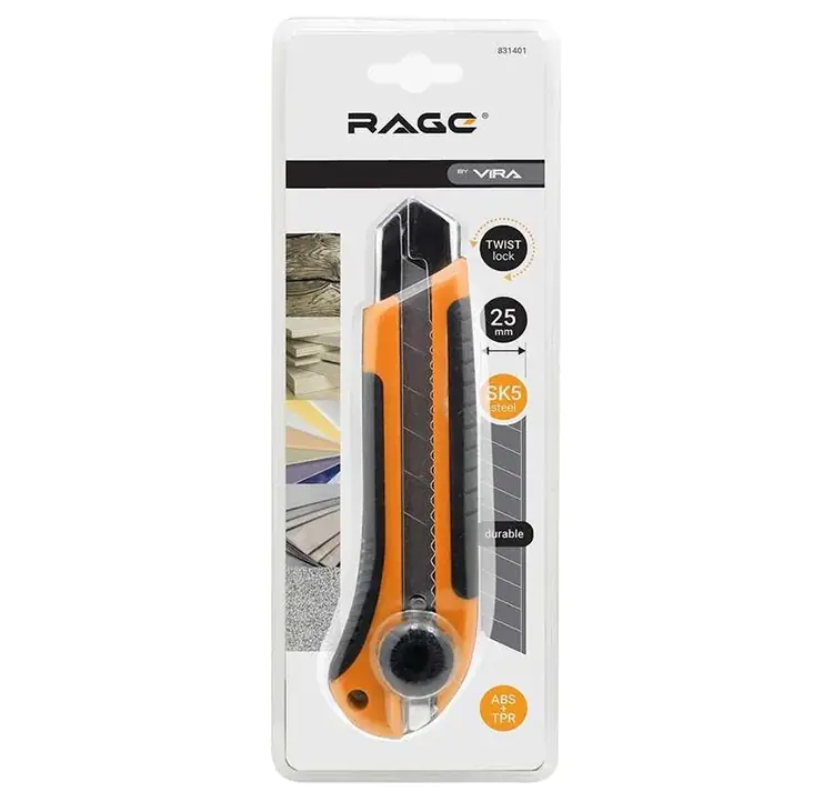 Нож с 2-компонентной рукояткой 25 мм Vira Twist-lock подходит для раскраивания линолеума, фанеры и др. Рукоятка инструмента прорезинена, разработана с учетом анатомической формы ладони, что обеспечивает надежный хват ножа, а также снижает нагрузку на кисть. Данная модель имеет систему фиксации Twist-lock – гарантия быстрого и надежного закрепления лезвия в требуемом положении
