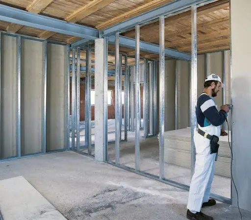 Конструкция профиля UW 75x40 дополняется вертикальными стойками из профиля CW. При монтаже вам также потребуются комплектующие и крепёжные детали.