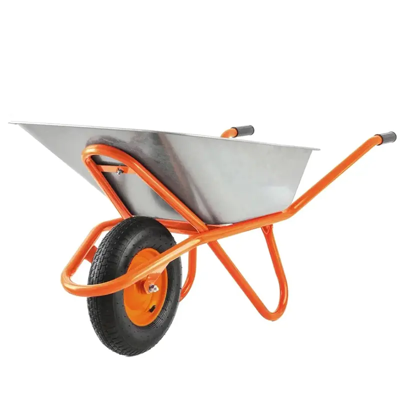 Усиленная садово-строительная одноколесная тачка СТРОЙМАШ, с объемом кузова 90 л, позволяет легко перемещать грузы весом 200 кг.