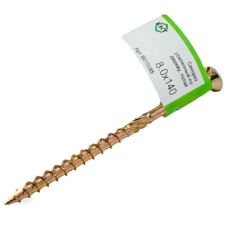 Саморез конструкционный 8*140 мм подходит для твердых сортов древесины. Рассчитан на высокие нагрузки и суровые условия эксплуатации.
