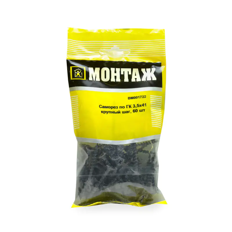 Саморез 3,5х41 (60 шт) с крупным шагом предназначен для надежного крепления гипсокартона к деревянной подконструкции. Изготовлен из стали, поверхность фосфатирована или оксидирована, что придает ему дополнительную прочность и защиту от коррозии. Наконечник острый, головка потайная с крестообразным шлицем РН2. Шаг резьбы редкий.