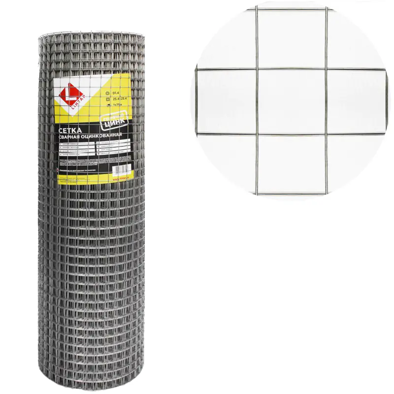Сетка сварная оцинкованная Lihtar применяется для армирования поверхности при штукатурных работах и в системах теплоизоляции; для армирования наливных полов, гидроизоляций, стекла; для крепления кирпичной кладки, в целях птицеводства, звероводства, а так же в дизайне помещений. Размер 1 х 25 м, ячейка 25 х 25 мм, толщина проволоки 1,4 мм.