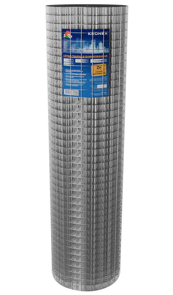 Сетка сварная отделочная 1 х 25 м STK-0355 изготавливается из низкоуглеродистой проволоки путем точечной сварки. Особое внимание при производстве уделяется качеству сварных швов, от их прочности напрямую зависит срок службы производимых из сетки сооружений. Далее сетка покрывается защитным слоем цинка. Ячейка 25 х 25 мм. Проволока 1,8 мм.