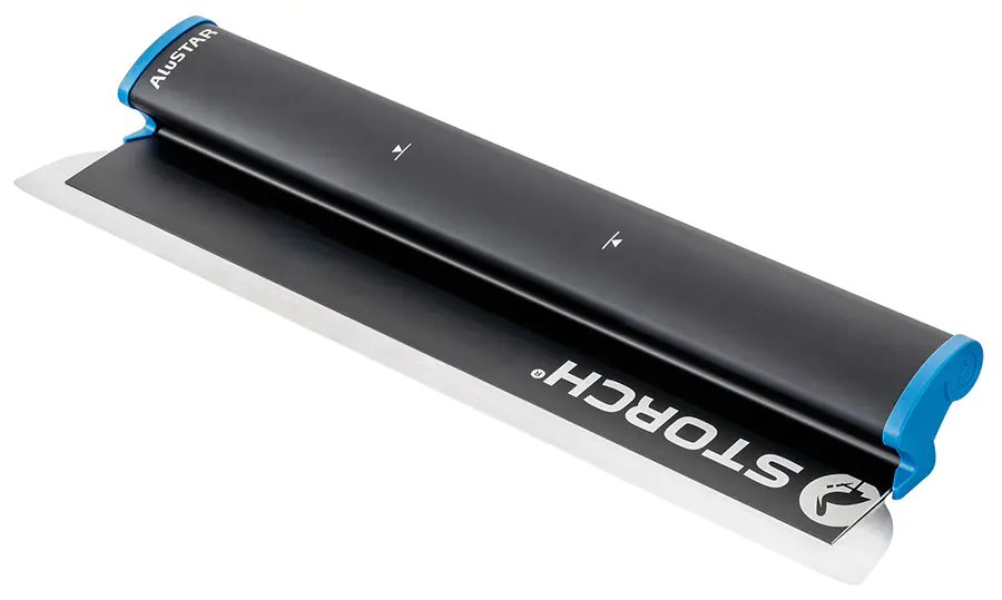 Шпатель Flexogrip AluStar разработан с возможностью смены лезвий, что позволяет установить как высокоэластичные лезвия толщиной 0,3 мм, так и более упругие толщиной 0,5 мм. Лезвия изготовлены из легированной, смягченной, износостойкой нержавеющей стали, что обеспечивает идеально ровное и гладкое разравнивание. Может использоваться на высоте, подходит для потолков и высоких стен. Специально разработанный для AluStar адаптер совместим со всеми телескопическими удлинителями LOCK-IT и позволяет выполнять работы на высоких стенах и потолке без использования лестницы.