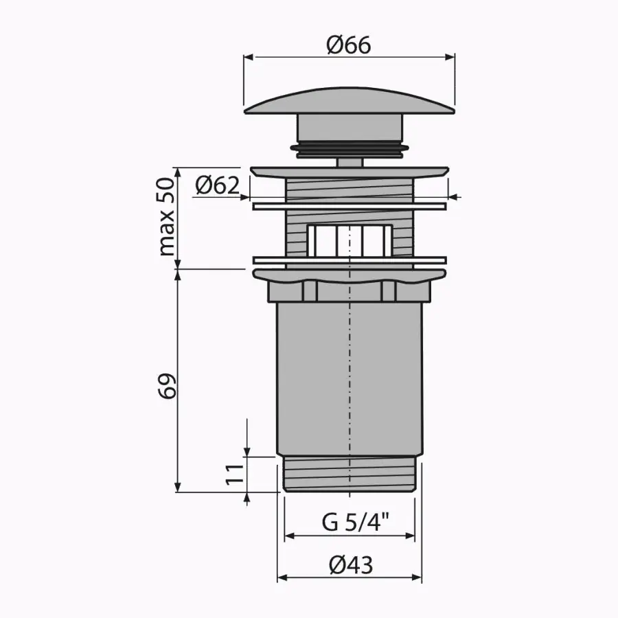 Донный клапан AlcaPlast A392 CLICK/CLACK предназначен для установки на раковину совместно со смесителем, у которого нет донного клапана.