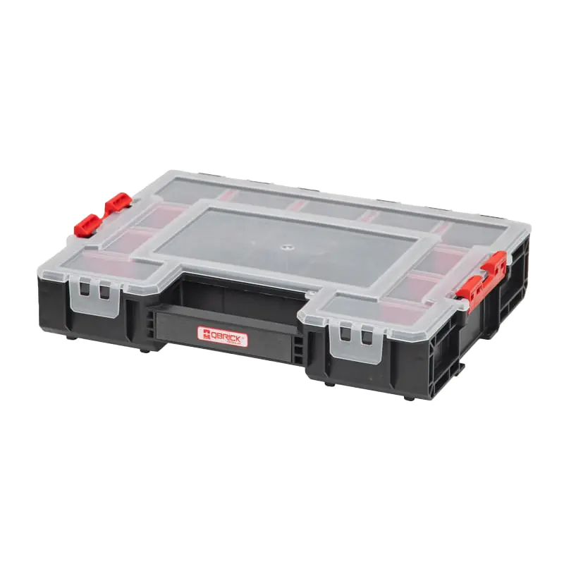 Органайзер Qbrick Regular Organizer 400 – это новое решение для организации небольших предметов. Несомненным преимуществом является возможность модульного комбинирования органайзеров одного размера. Боковые разъемы, помимо функции соединения с корпусом, позволяют подсоединить другую модель органайзера. Регулируемые перегородки и удобное расположение отсеков позволяют организовать внутреннее пространство в зависимости от потребностей. Содержимое органайзеров защищено прочной прозрачной крышкой со специальным замком, что дополнительно предотвращает случайное закрытие крышки во время использования.