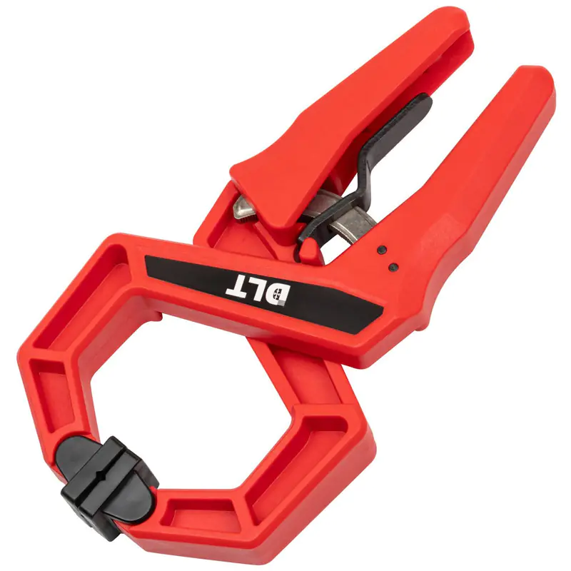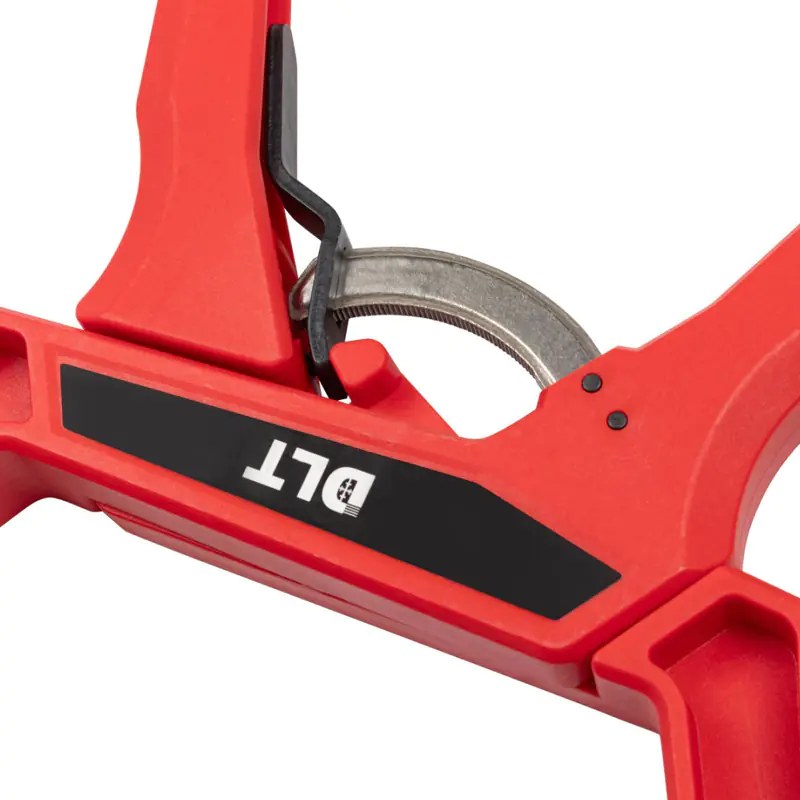 Клещеобразная усиленная струбцина DLT 62004 в пластиковом корпусе, способна зажимать и удерживать детали толщиной до 100 мм. Будет полезна при склеивании или разметке заготовок, можно использовать для быстрой фиксации монтажных уголков. Подвижные губки с углублениями на прижимных поверхностях позволяют максимально точно позиционировать деталь при захвате, также позволяют работать с деталями сложной формы. Храповой механизм обеспечивает надежную и жесткую фиксацию в отличие от механизма пружинных струбцин прищепочного типа. Выверенная геометрия зубьев на храповом механизме позволяет держать необходимое усилие зажима на стабильном уровне. При нажатии на курок происходит мгновенное раскрытие струбцины.
