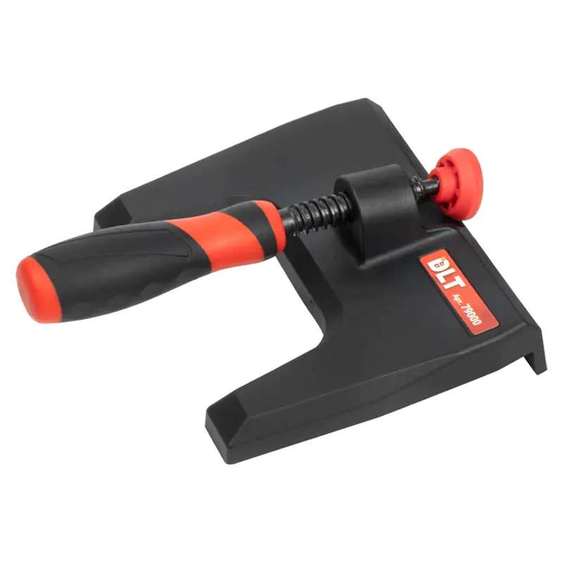 Струбцина для монтажа ламината и паркета DLT 79000 – удобное приспособление способствует быстрой фиксации и затягивания досок или панелей пола. Прочная, продуманная конструкция и правильно подобранный материал позволяют производить затяжку с большим усилием. Благодаря винтовому механизму рабочий диапазон устройства составляет 4-30 мм, а пластиковая накладка на винт защищает стену от повреждений.